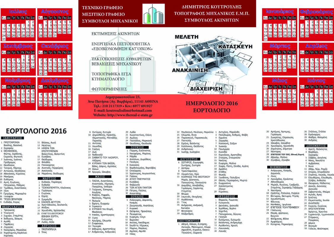 Ημερολόγιο 29x10 cm - ΔΗΜΗΤΡΙΟΣ ΚΟΥΤΡΟΥΛΗΣ
