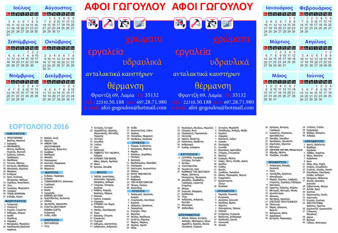 Τετράπτυχο Ημερολόγιο 29x10 cm - ΑΦΟΙ ΓΩΓΟΥΛΟΥ